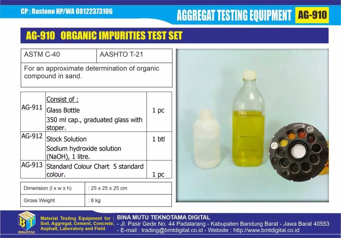 AG-910 ORGANIC IMPURITIES (PENGUJIAN KADAR ORGANIK DALAM AGREGAT)