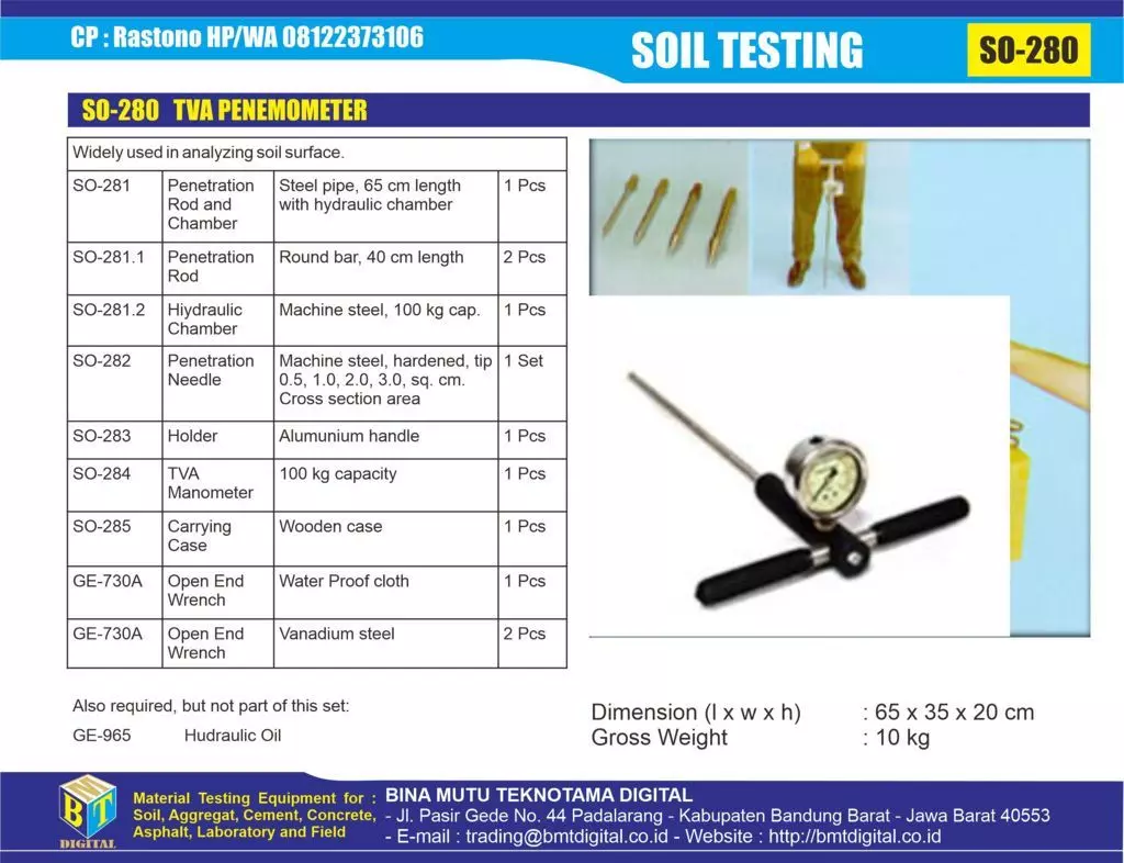 SO-280 TVA PENETROMETER (PENGUJIAN PERMUKAAN TANAH)