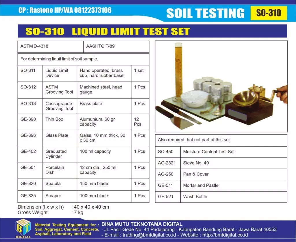 SO-310 LIQUID LIMIT TEST (PENGUJIAN BATAS CAIR TANAH)