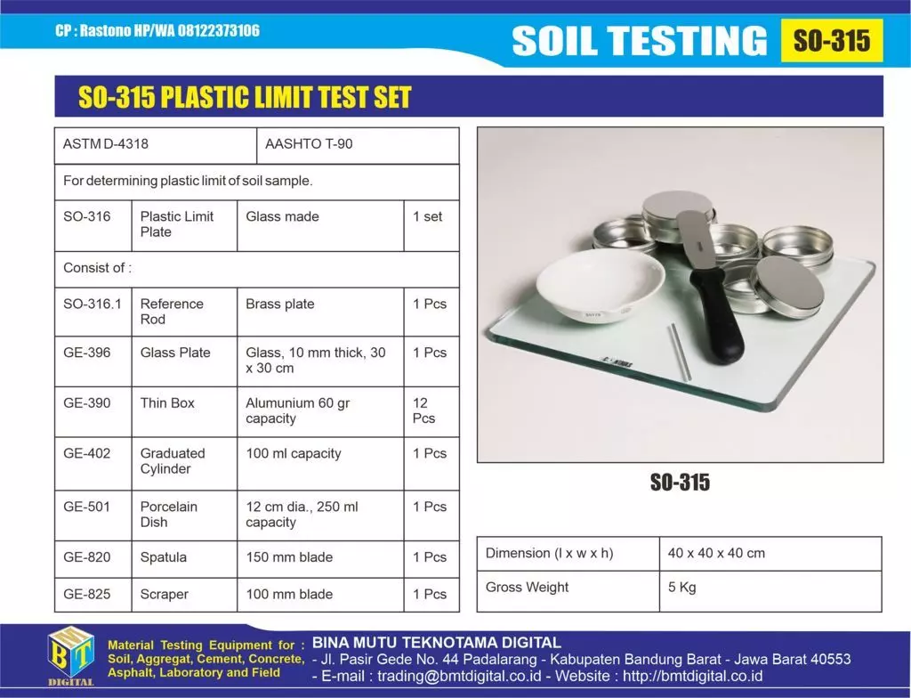 SO-315 PLASTIC LIMIT TEST (PENGUJIAN INDEX PLASTIS TANAH)