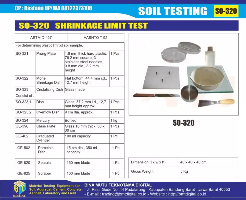 SO-320 SHRINGKAGE LIMIT TEST (PENGUJIAN BATAS SUSUT)