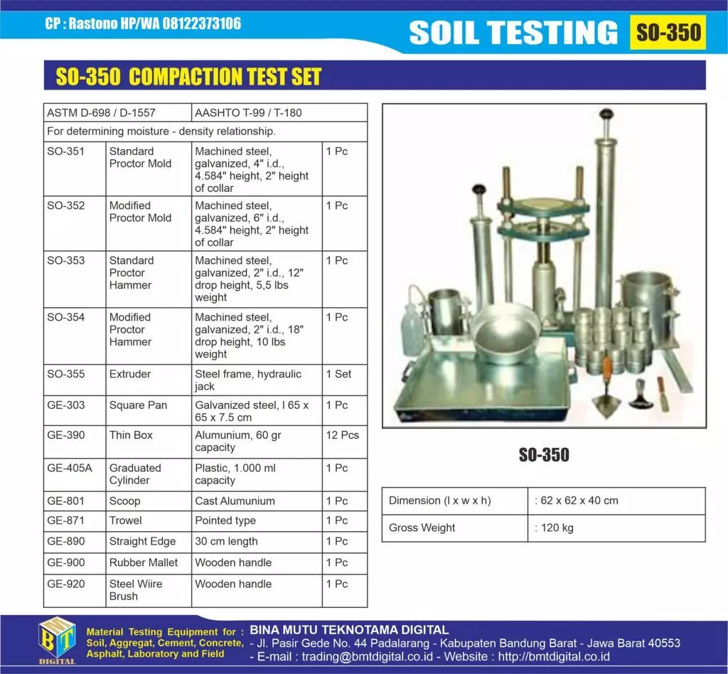 Standar Acuan : SNI 1742-2008; ASTM D-698 / D-1557; AASHTO T-99 / T-180