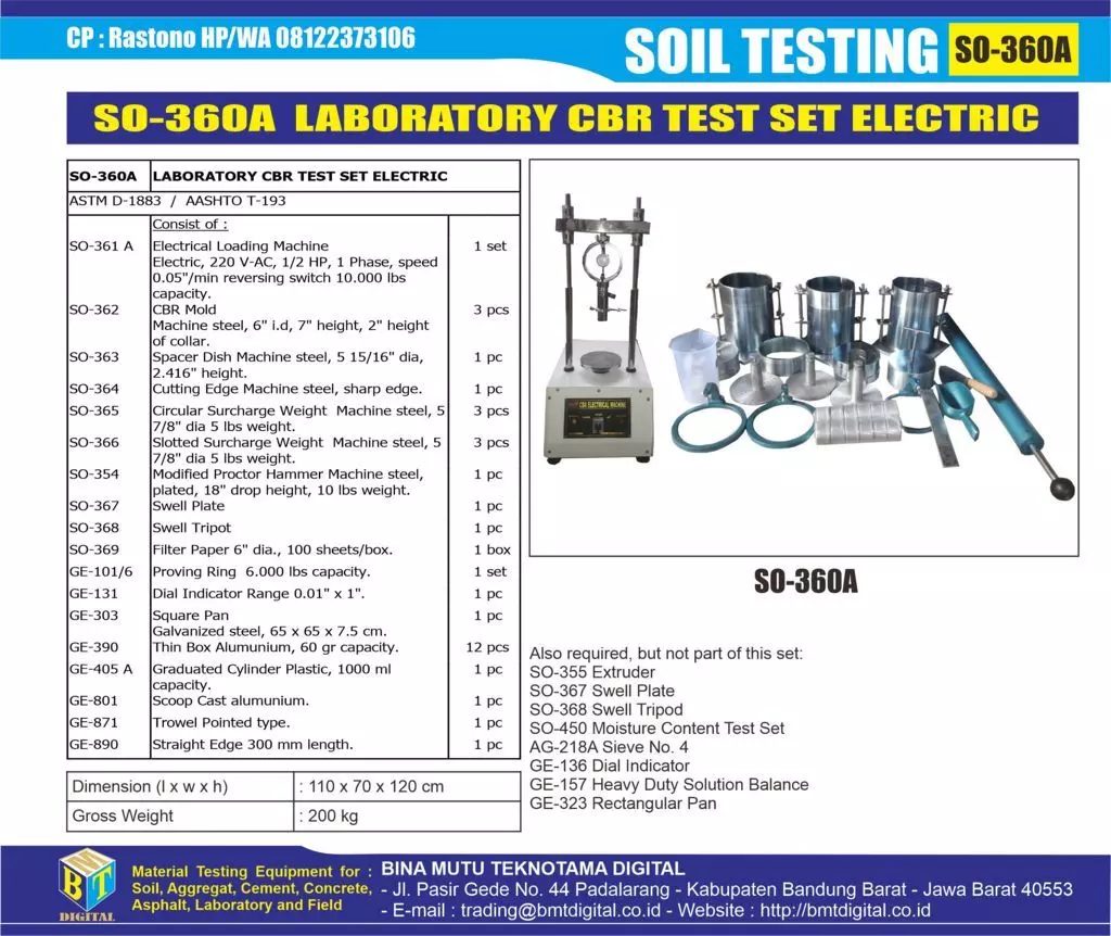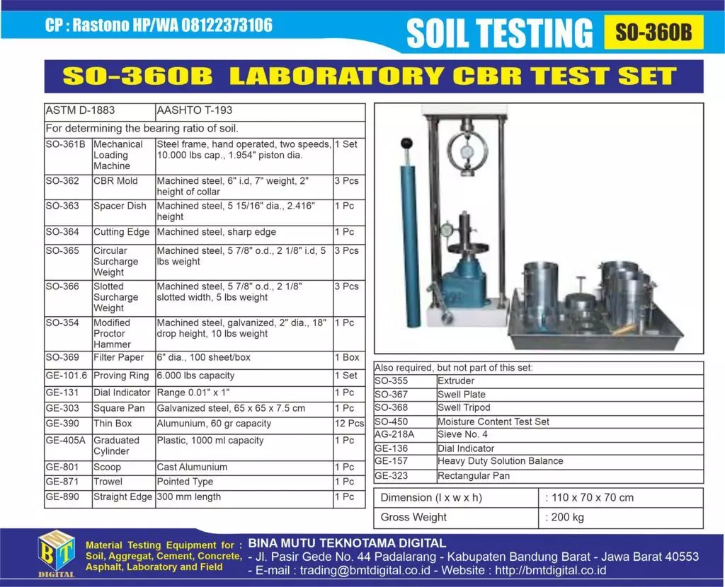 Peralatan lengkap untuk Pengujian CBR Laboratorium dapat dilihat pada uraian di bawah ini :